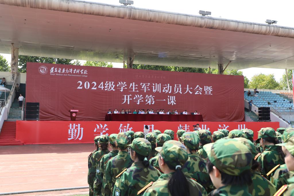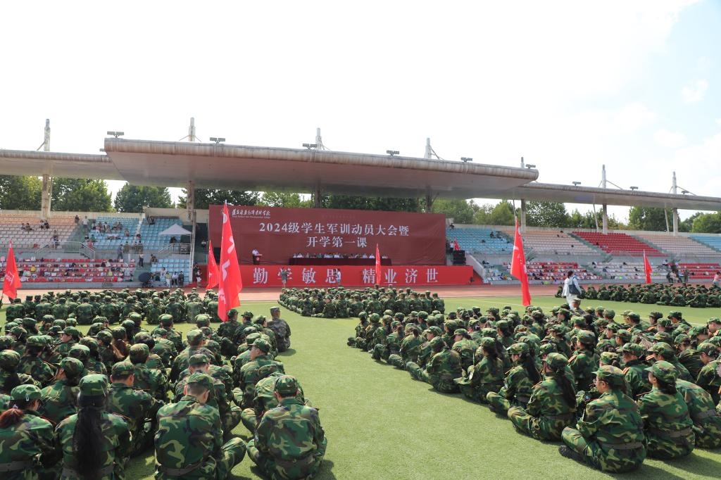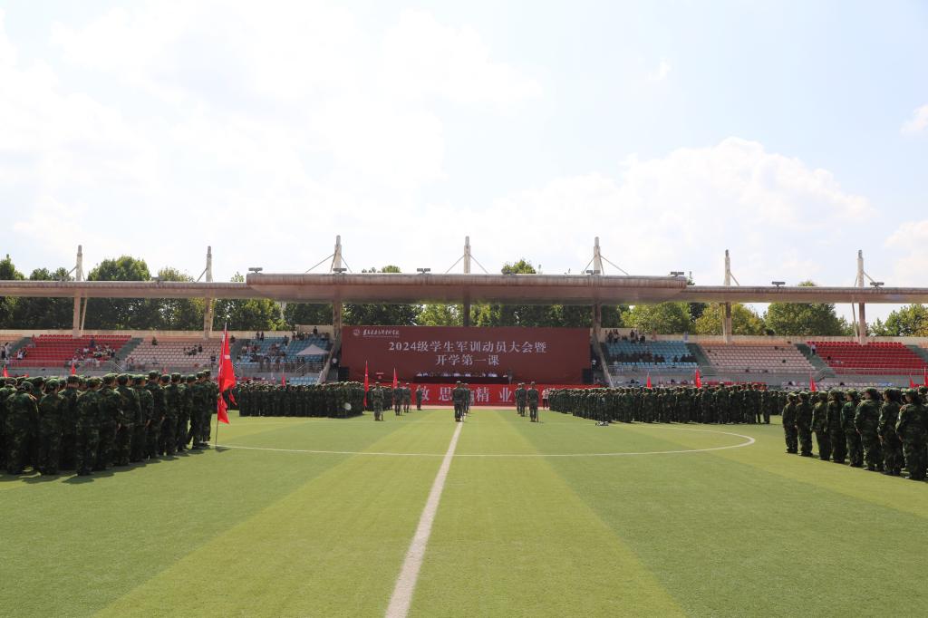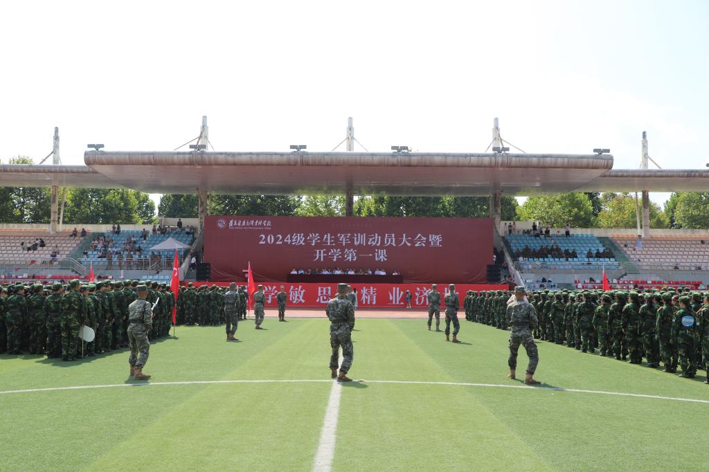9月14日,学校2024年新生军训动员大会暨开学第一课在风雨操场隆重举行。学校党委书记俞松,党委副书记、校长陆远富及党委班子成员,承训单位有关负责人出席会议;相关职能部门负责人、各教学系副科级以上干部、2024级辅导员、军训教官以及2024级全体新生参加大会。