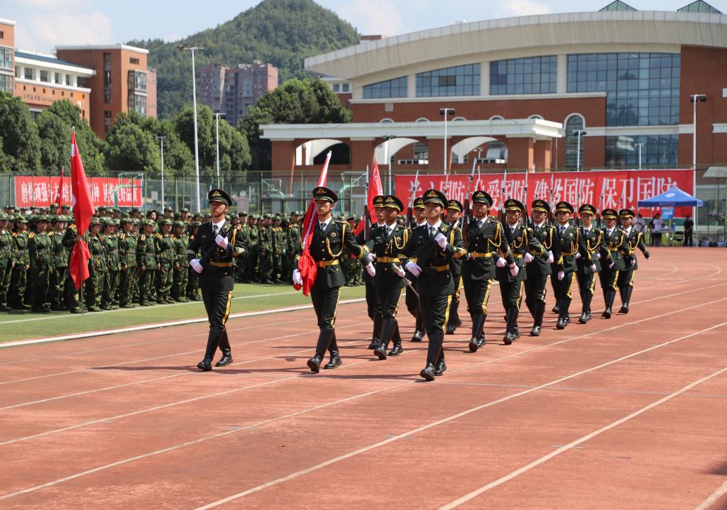 大会举行了隆重的升旗仪式;承训教官作了军事技能展示;学校向承训单位授军训旗。