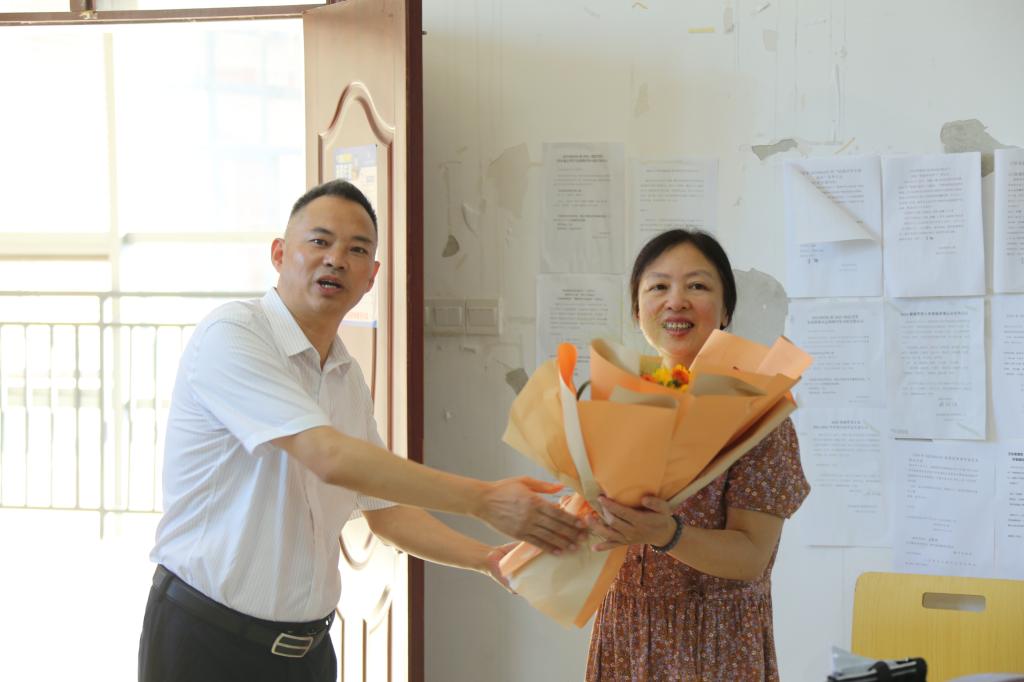 今天上午,校领导俞松、陆远富、张武晓、岳应权、张彪等分别率队到各间教室向一线教师敬献鲜花;学校组织学生以班级为单位,分别向教师节当天授课的教师敬献鲜花。学校还组织教职员工集体合影留念。