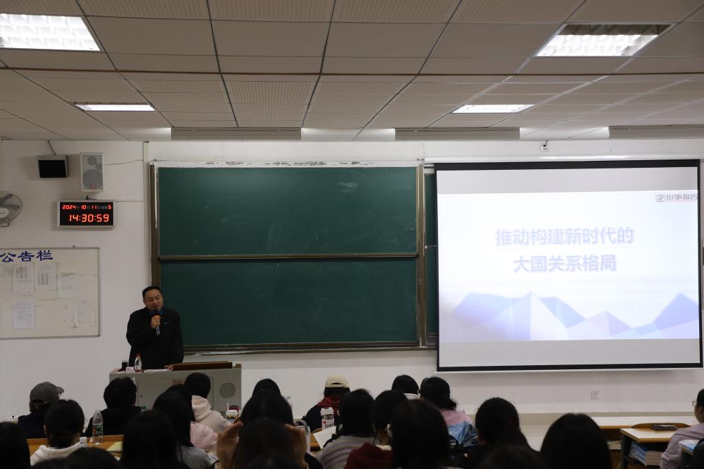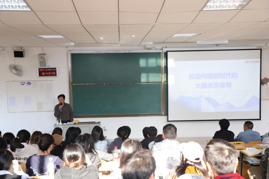 党委委员、副校长张彪10月29日下午7.8节在综教204为中医系23级康复1.2班讲授《推动构建新时代大国关系格局》“形势与政策”思政课