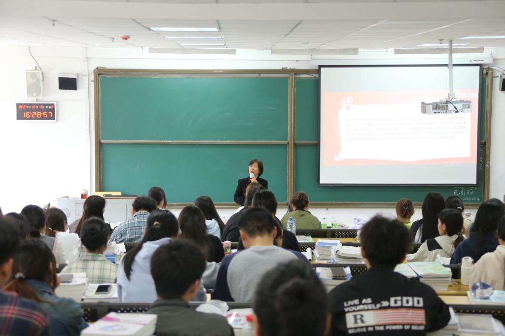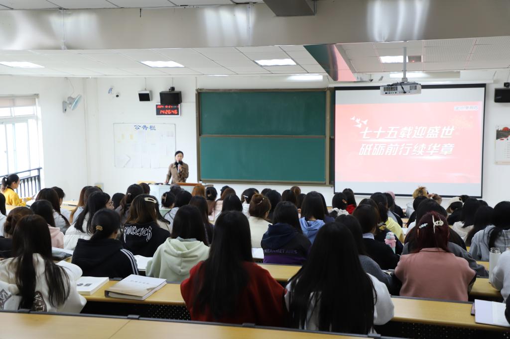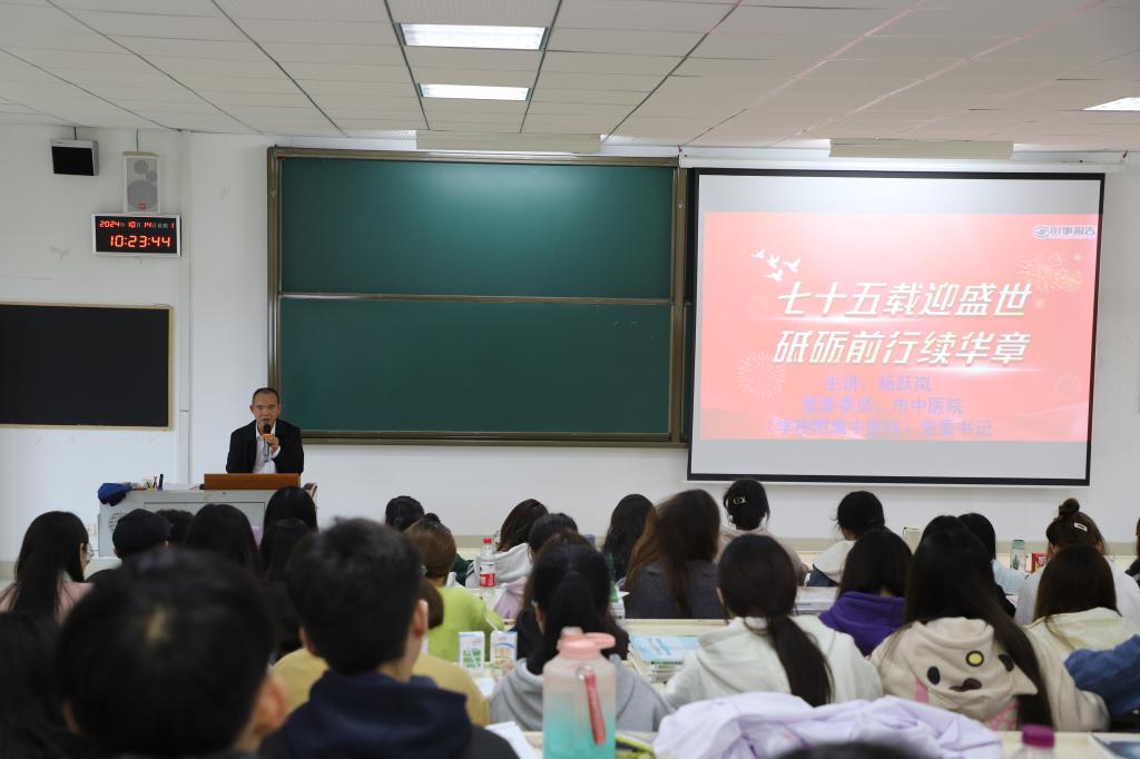 党委委员、市中医院(学校附属中医院)党委书记杨跃岚10月14日上午3.4节在医技系A201为23级影像1.2班讲授《七十五载逢盛世 砥砺前行续华章》“形势与政策”思政课