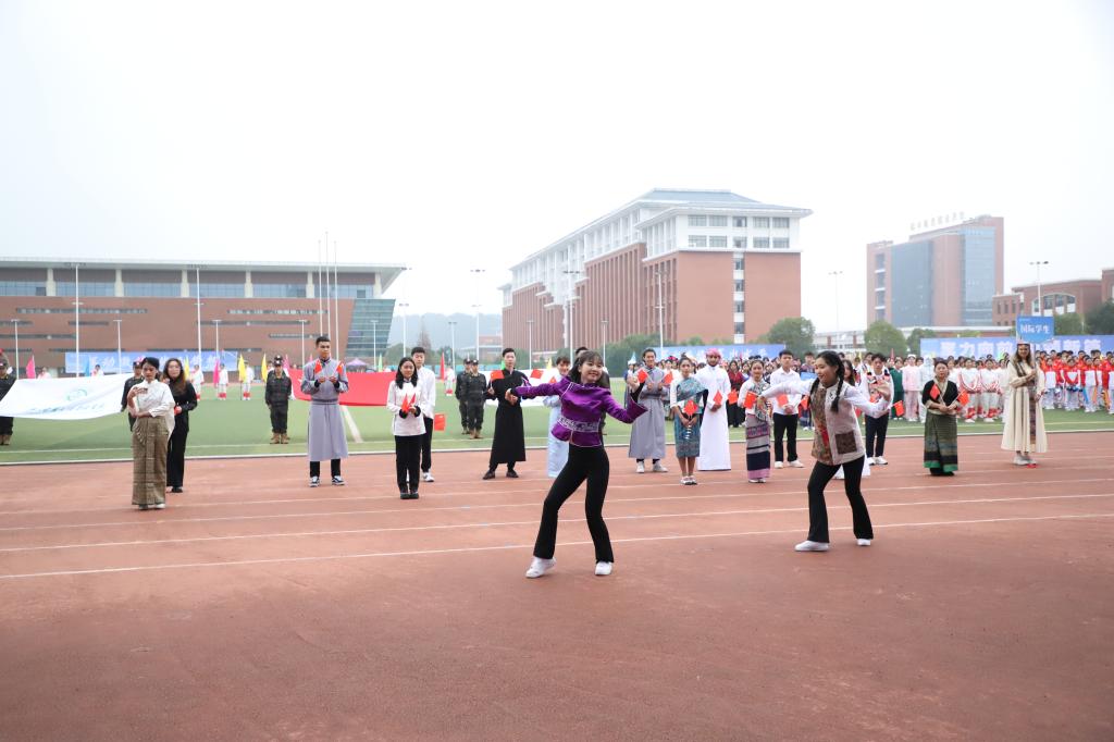 早上9点整,伴随着欢快的旋律,由国旗方队、彩旗方队、各教学系运动员、国际学生、校运动队、裁判队等组成的方队穿着特色服装、迈着稳健步伐入场,并表演了精彩的节目。