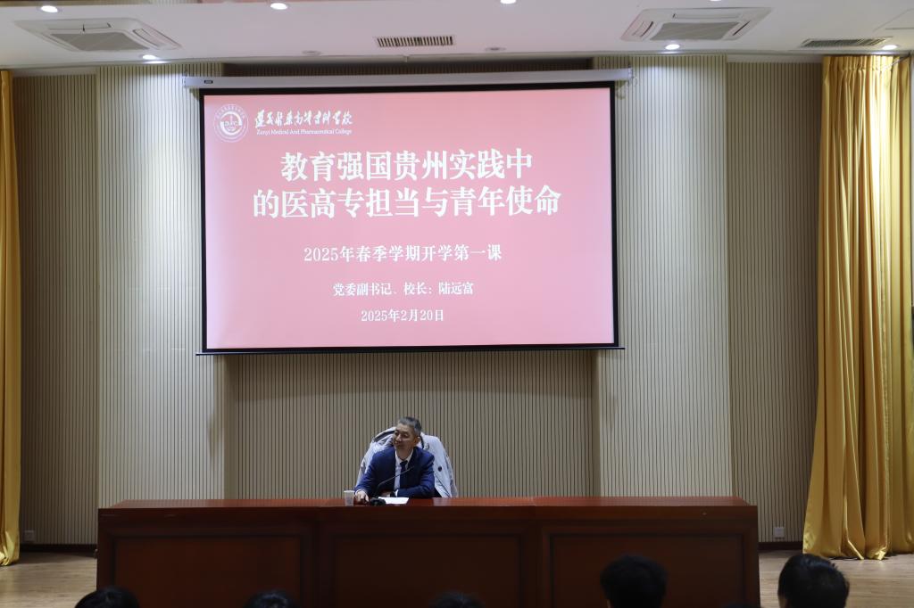 2月20日,学校党委副书记、校长陆远富以“教育强国贵州实践中医学院校担当和青年使命”为题,在思泉讲习堂为200余名学生代表讲授“开学第一课”。