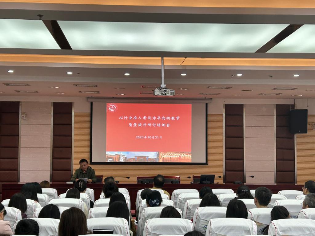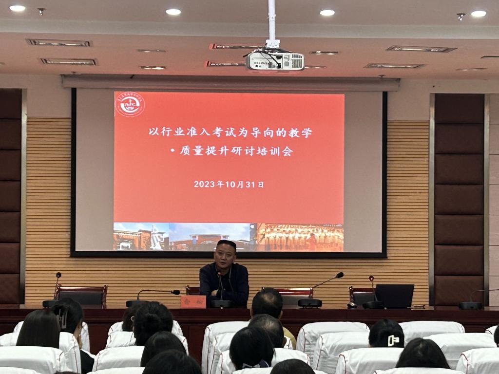 2023年10月31日,我校召开了以行业准入考试为导向的教学质量提升研讨培训会。我校党委副书记、校长俞松,中医学系党总支书记、升本办常务副主任李冬梅,教务处处长、升本办副主任刘亮,以及各系部(院、中心)主任、副主任、教务科长、教研室主任、各专业带头人等出席了本次会议。