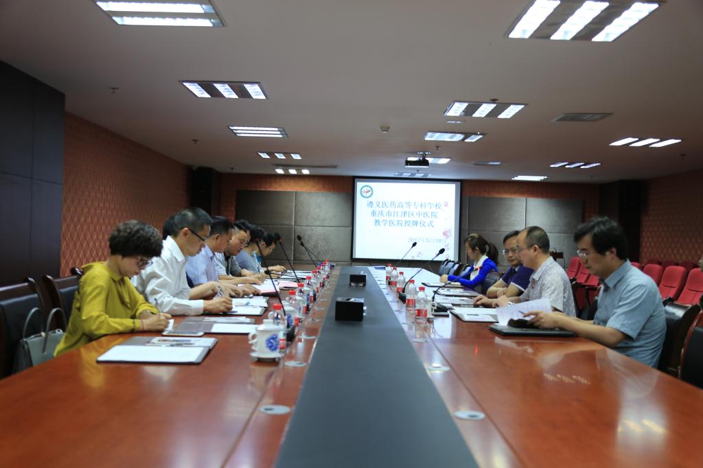 揭牌仪式在江津区中医院会议室举行。江津区中医院院长黄静及相关部门领导出席会议,会议由江津区中医院副院长刁鹏主持。张武晓副书记代表学校与江津区中医院签署了教学医院合作协议,这标志着重庆市江津区中医院正式成为我校的教学医院。