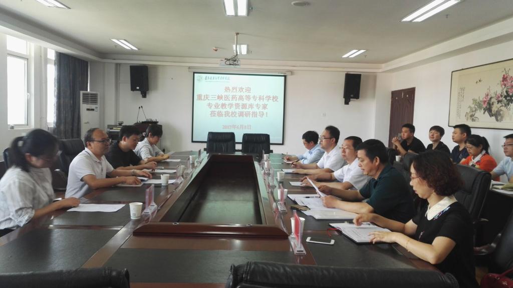 2017年6月8日,重庆三峡医药高等专科学校教学资源库建设(中医学教学资源库)负责人李勇华老师带队一行4人,到我校进行调研学习。上午9时在青教公寓601会议室召开座谈会,出席会议的有校长范奇元、教务处处长郭家林、中医系主任王农银及资源库建设的相关老师。会议由教务处处长郭家林主持。