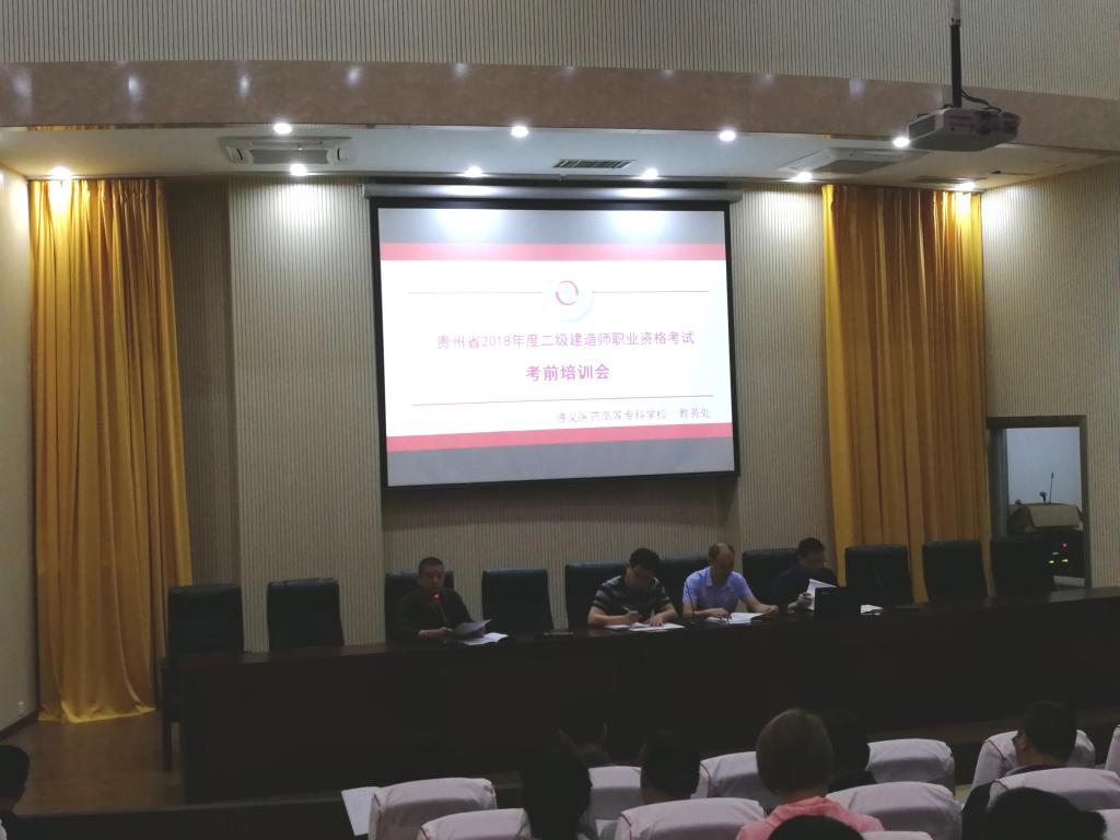 5月31日下午四点,我校在图书馆三楼就2018年贵州省二级建造师职业资格考试举行监考考务培训,教务处处长郭家林,副处长刘亮,住建局宋赛科长、蒋贵应科长,全体300名监考老师及教务处部分工作人员参加了本次培训。培训会由郭家林主持。