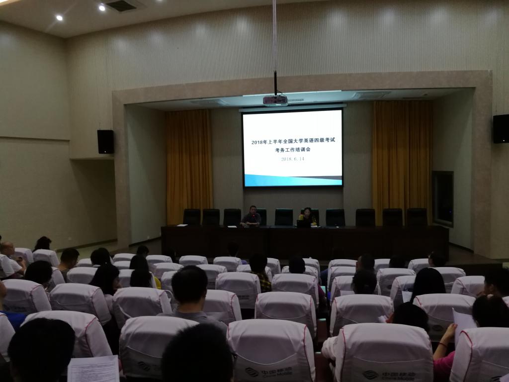 6月14日下午三点半,我校教务处在图书馆学术报告厅举行2018年6月全国大学英语四六级考试监考培训会。教务处处长郭家林、副处长刘亮、李冬梅,承担本次四六级监考的65名教师参加了培训会,会议由郭家林主持。
