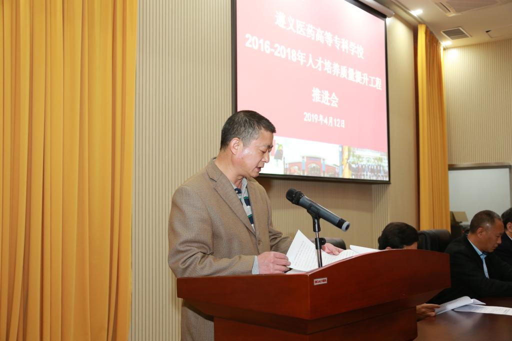 会上,教务处处长郭家林首先对我校三年来的人才培养质量提升工程进行了总结。三年来通过参加贵州省教育厅组织的人才培养质量提升工程,我校积极组织项目的申报和推动项目的建设,共获省级立项20项次。通过项目申报和建设使我校在专业建设、课程建设、师资队伍建设、实训基地建设、制度改革、智慧校园建设、文化校园建设等方面取得了明显成效,学校的综合办学治校能力进一步提升。我校将以国家职业教育改革实施方案实施为指南,按照“健康中国2030纲要”和基层卫生事业发展的要求,全面深化教育教学改革,继续深化和创新医教协同、产教融合的人才培养模式,提升人才培养质量和服务社会的能力,为贵州和遵义的经济发展和健康卫生事业发展作出更多贡献。