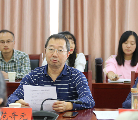 9月19日下午,我校2019—2020学年度第一次教学工作会议在综合楼737会议室召开。学校校长范奇元出席会议,各教学系(部)负责人、教务科长以及教务处全体人员参加了本次会议。会议由教务处副处长丁朋晓主持。