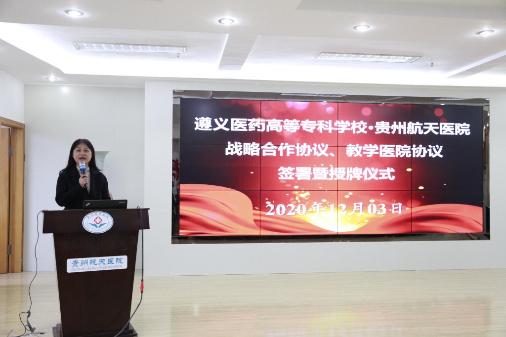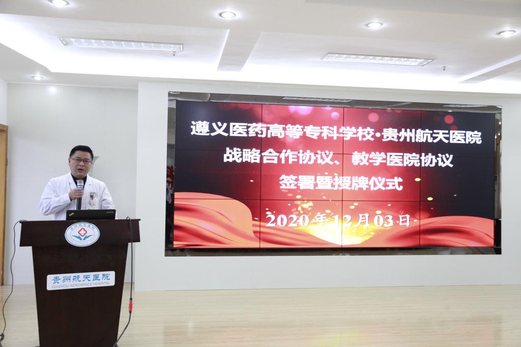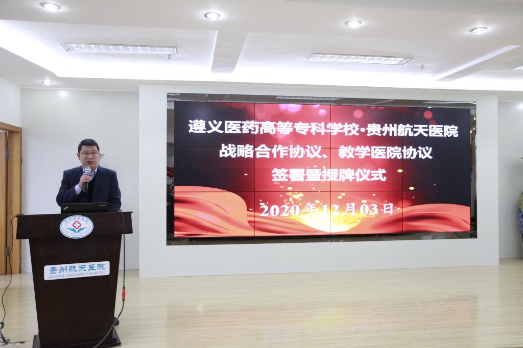 12月3日下午,学校党委书记孙逐、副校长覃晓龙、教务处处长郭家林、组织人事处处长魏颖、科研处副处长匡晓燕等一行赴贵州航天医院举行我校教学医院签约暨授牌仪式。贵州航天医院院长冯春林携领导班子成员及相关科室主任、副主任、教研室主任、职能部门负责人、教学秘书及兼职教师受聘人员出席。仪式由贵州航天医院副院长朱往文主持。