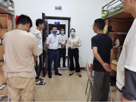 为进一步做好遵义市中医院临时入住学生管理工作,切实保障相关工作有序开展,及时了解学生的思想动态、心理状况及学习情况等,9月15日,学校党委委员、副校长覃晓龙,遵义市中医院科教科负责人陈江莉一行4人深入学生公寓走访看望了入住我校的146名学生,为其送去关心和问候。