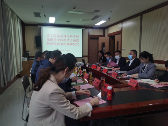 郑继珍院长介绍了湄潭县中西医结合医院的发展历程、人才团队、先进设施、教学体系、科学研究等相关医教研情况。刘亮副处长在会上宣读了《关于同意湄潭县中西医结合医院成为我校教学医院的决定》文件。覃晓龙副校长介绍了学校的发展历程、师资队伍、人才培养、项目建设、科学研究等方面的情况;并希望医院进一步加强教学组织机构建设和规范临床教学管理等工作,积极参加学校安排和组织的各项教育教学工作,达到校院双方优势互补、资源共享、共同发展。