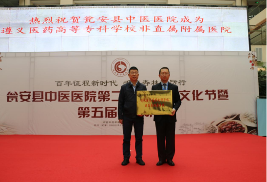 瓮安县中医医院在举行第二届中医药文化节暨第五届膏方节活动之际,同时隆重举行了我校与瓮安县中医医院合作共建非直属附属医院授牌仪式。随后双方开展座谈会,会上,宋熹院长介绍了瓮安县中医医院的发展历程、对中医药文化的传承、教学工作开展情况以及成为我校非直属附属医院后的教学科研工作规划等情况;覃晓龙副校长介绍了我校的基本情况,对医院的发展给予了高度评价。并强调通过今天的授牌仪式,标志着我校与瓮安县中医医院协同培养中医类专业高素质应用型技术技能人才工作再上新台阶,校院双方将在医、教、研各方面加强合作与交流,打造“校院合作”新模式,提高中医药服务能力,为更好助力健康贵州建设和瓮安县卫生事业发展作出新贡献!
