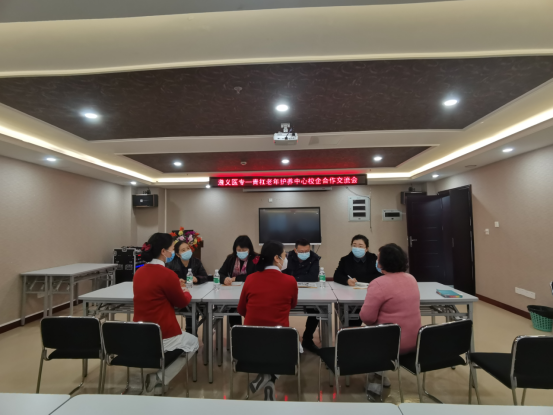 刘亮处长一行实地参观了老年护养中心护养区、疗养楼、康复区、慢病区等相关区域,还对涉及学生实习的工作部门、住宿、饮食等进行了细致的参观考察。座谈会上,刘亮处长首先介绍了学校的相关情况,安晓倩科长详细介绍了老年保健与管理专业学生的培养情况。喻秀丽主任对刘亮处长一行的到来表示欢迎,并介绍了老年护养中心的发展历程、文化理念、中心规模、业务范围和人才需求等相关情况,她希望本着产教融合、校企合作、服务高校的理念,进一步探索校企合作的新模式。