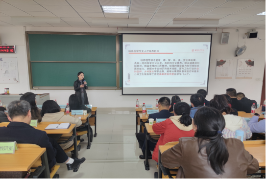 为进一步提升临床教师的教学能力,加深医教融合,助力校院教师实现专业课程和思政课程同向同行、形成协同效应,把思政教育贯穿到教育教学全过程。2023年3月16日,学校在临床系B201教室开展2023年青椒论坛系列活动—“如何开展润物细无声的专业课课程思政”,我校10余家附属医院和教学医院及临床系全体老师参加了活动,活动由临床医学系副主任徐广敏主持,由临床医学系病理学教研室主任魏昕教授主讲。