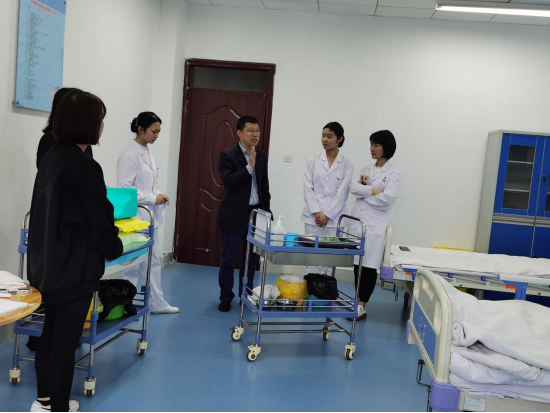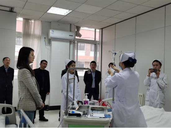 4月12日,学校副校长覃晓龙、教务处处长刘亮到护理系观看并指导师生选手操作训练,对赛前训练中选手的操作给出了宝贵的意见,在比赛中严格按照无菌操作要求,使之更贴近临床、贴近岗位、贴近服务对象。还在技能操作经验和临场心理调整等方面进行现场指导。