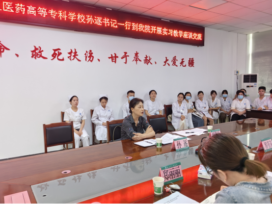 孙逐与各医院负责人深入交谈,感谢实习单位为学生提供宝贵的实习机会,希望双方能进一步加强合作交流,提高实践教学实效,培养更多专业人才。随后孙逐与实习学生召开座谈会,全面了解实习生学习、生活、工作等情况,要求实习生一要树立良好形象,时刻牢记自己是遵义医高专的一名学生,一言一行都代表着学校的形象和声誉;二要增强责任意识,坚持认真负责的态度,坚守实习岗位,服从带教老师的安排;三要增强安全意识,特别要提高医疗安全、交通安全、宿舍安全和防盗防骗意识;四要增强纪律意识,严格遵守学校和实习单位的各项纪律;五要增强奉献精神,特别是学生干部、组长要发挥模范作用和奉献精神,以优异的成绩完成本次实习任务。