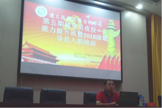 2018年9月3日上午9:00,学生处在图书馆三楼报告厅召开了第五期辅导员夜校——辅导员能力提升班暨2018级辅导员入职培训,学校党委委员、副校长郝刚博士担任主讲。学生处处长杨权勇、副处长王立远、思想政治科科长李德慧出席讲座,2018级新生班辅导员、全校16级、17级专兼职辅导员150余人听取了讲座。