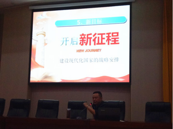 杨自义从十九大报告的政治意义、理论意义、实践意义三个方面进行讲解,总结了开篇的核心是“不忘初心,牢记使命”结尾的核心是“大道行之,天下为公”。以一个主题、十大变革、七个“新”、五个时代等方面总结了经济建设的重大成就、深化改革的重大突破、民主法治的重大步伐。杨自义声音洪亮、情感饱满、充满激情,给辅导员老师上了一堂精彩的公开课。