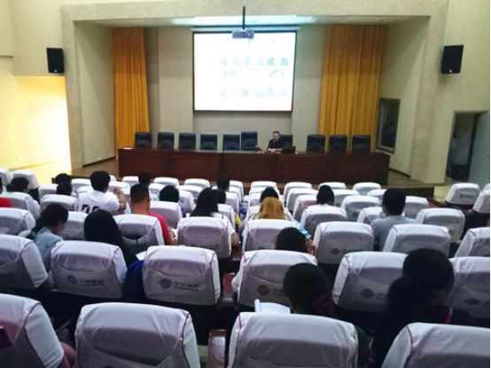 6月6日下午15:50,学生处在图书馆3楼学术报告厅组织2017级辅导员参加辅导员夜校——辅导员能力提升班,由药学系党总支书记杨自义主讲十九大报告精神。