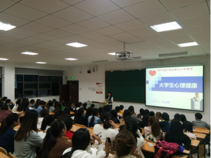 护理系学生成长发展指导工作成绩突出。为了遵循“积极向上、乐观自信、学会沟通、完善人格、热爱生命、维护健康、开发潜能、和谐发展”的理念,丰富心理健康教育内容,扎实开展心理咨询指导工作。随着社会的飞速发展,因而在青年学生中随之而来的就有很多的心理问题,我系张金霞老师分别给2017级每个班开展了一次“大学生心理健康教育”的讲座。帮助新生正确对待环境、人际关系、学习、语言、生活习惯的变化和经济状况的差异,克服新生的陌生感、孤独感,使他们尽快融入大学生活中。