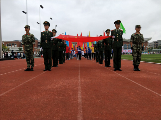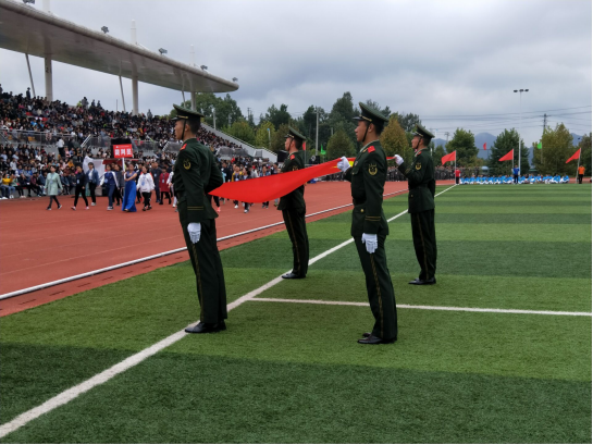 2017年10月20日上午,在开云app登录入口-开云(中国),操场上举行的第九届田径运动会暨第四届教职工运动会升旗仪式中,遵义医专武装部护旗队步伐整齐,意气风发,器宇轩昂赢得全场师生一致喝彩。