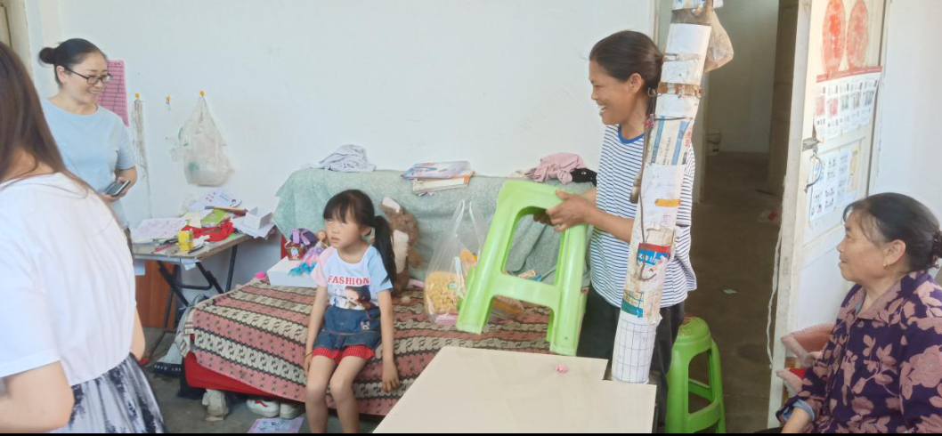 “三下乡”社会实践服务小组联系了板桥镇小学的老师走访了两户人家,两户均为贫困留守儿童,一户为杨思梅小朋友,另一户还是特困户的许梦璐小朋友。许梦璐小朋友父母常年在外打工,据小梦璐的奶奶说,在小梦璐一岁的时候父母就外出打工了,此后的小梦璐只有在照片里见过父母的样子,父母现在长什么样子她都不知道,一直跟着奶奶相依为命,现在才上三年级的小梦璐会洗衣服,会做饭,会做家务活,会穿针引线,这些我们在这个年龄的时候还在依偎着父母撒娇,看着小梦璐懂事的样子,让我们在场的队员感到十分的心疼。