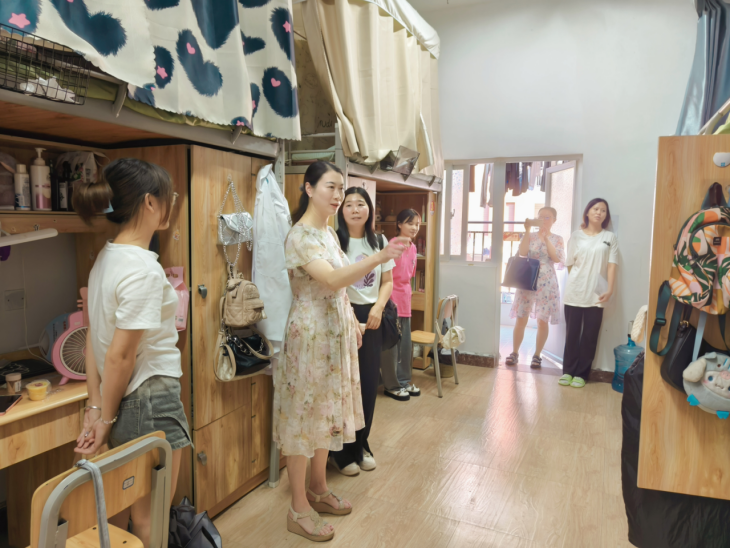 在对学生宿舍区域的排查中,着重向学生强调了用水用电、网络、个人财产、食品、防溺水等安全问题,同时,对学生的学习情况、健康情况、寝室卫生等进行了解和检查,并作出提示提醒。