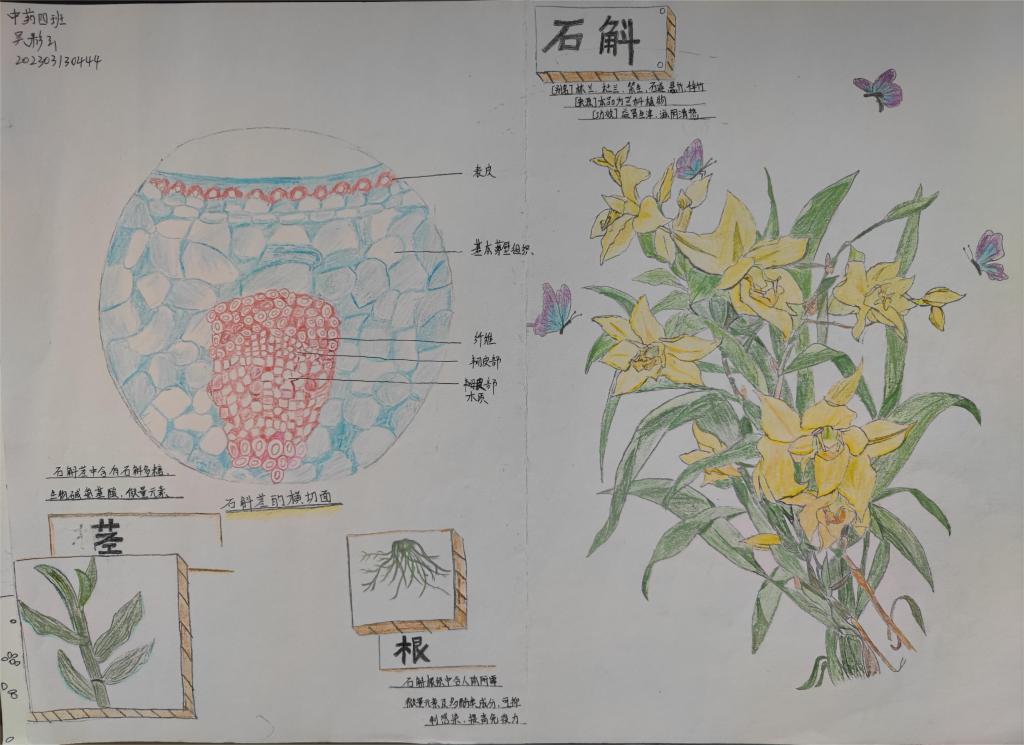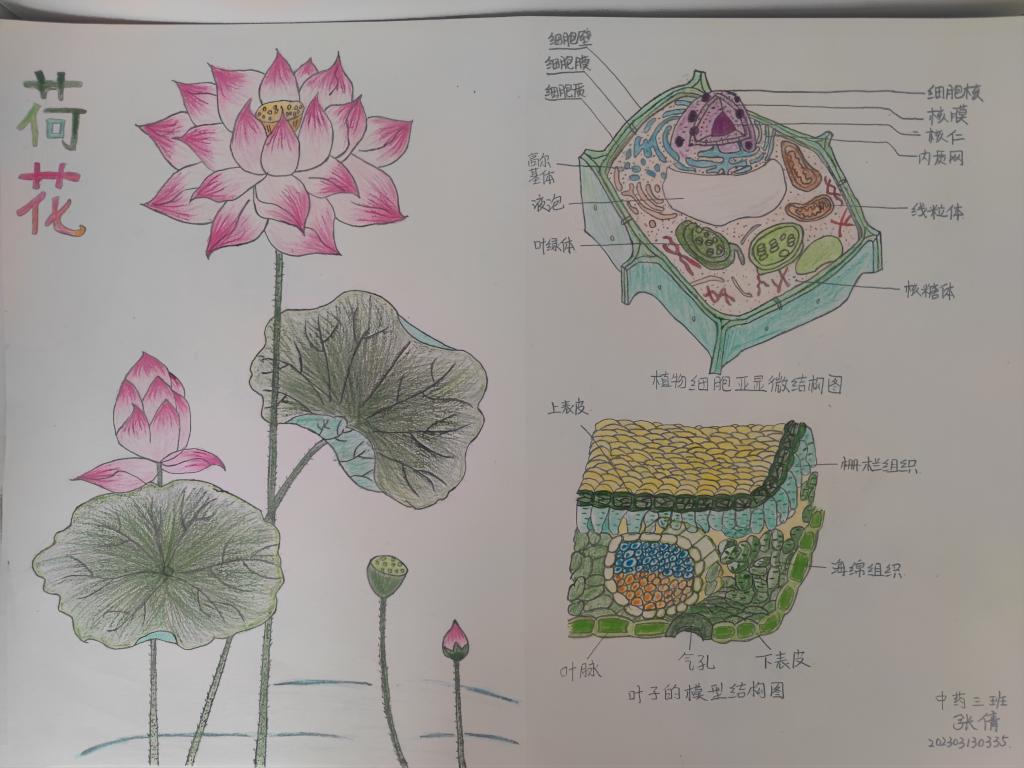 本次活动主要是绘制植物的细胞、种子、花等结构图。学生用五彩斑斓的色彩、纵横交错的线条勾画出生命之美,每一片花瓣、每一条根毛,都惟妙惟肖地展示在画纸上,如一件件珍贵的艺术品。