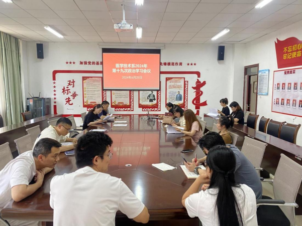 6月25日下午,医学技术系在系部会议室召开第十九次政治学习会议。会议由系党总支副书记代晖主持,全体教职工参会。