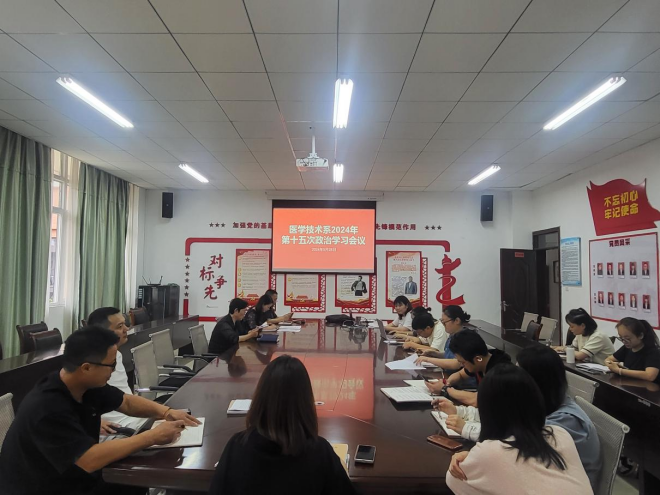 5月28日下午,医学技术系在系部会议室召开第十五次政治学习会议。会议由系党总支书记董亚云主持,全体教职工参会。