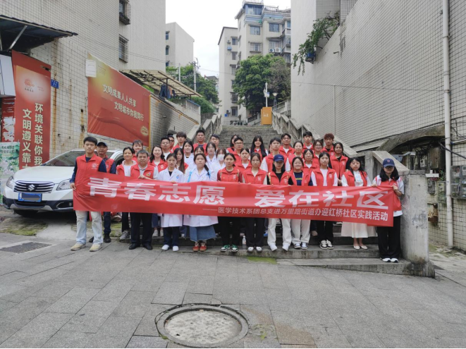 2024年5月20日,医学技术系党总支副书记代晖带领学生工作办公室老师、系部学生入党积极分子、团学干部、青年志愿者一行33人赴遵义市万里路街道办迎红桥社区开展以“青春志愿爱在社区”为主题的社区志愿服务实践活动。