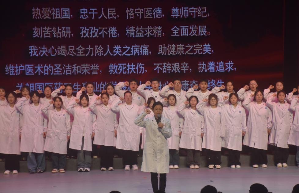 在学校附属中医院院长张文娟带领下,在场的师生一同庄严肃穆地宣誓《医学生誓言》。“健康所系,性命相托”,铿锵有力的誓词时刻提醒着同学们竭尽全力除人类之病痛,救死扶伤,不辞艰辛,为祖国和人类身心健康奋斗终生的愿景。
