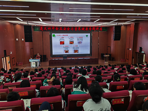 为了增强广大师生食品安全意识和自我保护能力,抓紧抓好学校食品安全知识教育工作,卫生管理系“红色领航,卫您健康”党建品牌在行动,2024年4月17日营养与食品卫生学教研室受邀前往遵义市第四中学开展食品安全讲座,党员代表、营养教研室教师参加,由党支部书记(系副主任)陶婷婷主讲。