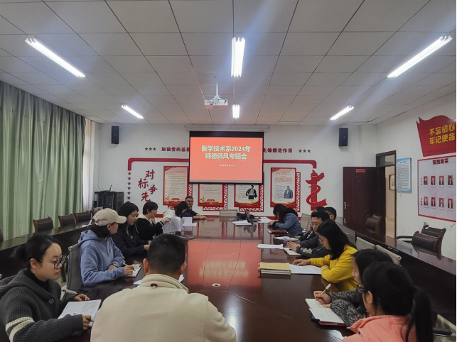 4月9日下午,医学技术系在系部会议室召开本年度师德师风工作专题会议。会议由系党总支书记董亚云主持,全体教职工参会。
