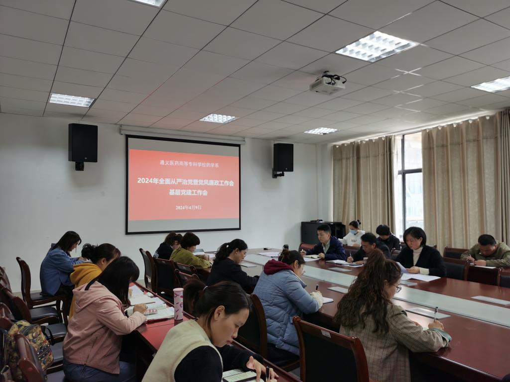4月9日下午,药学系在204会议室召开2024年党全面从严治党暨风廉政建设工作会议和基层党建工作会议。党总支书记陈一主持会议并部署2024年全面从严治党暨党风廉政建设工作和基层党建工作。全体教职工参加会议。