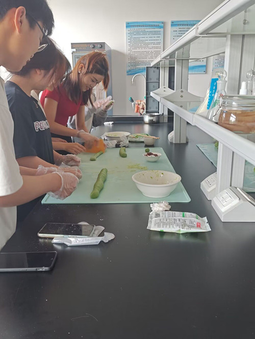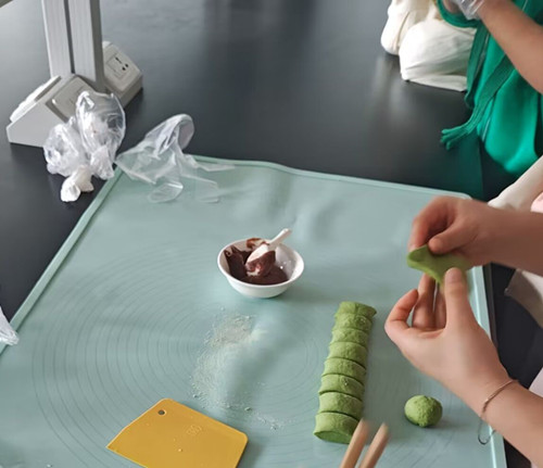 青团粉倒入盆中、热水烫开揉成面团、包入不同搭配的馅料、轻轻捏合揉圆……学生们提前在线上预习过制作步骤,实战时做得有模有样,青翠圆润的青团一个接一个地出现在学生们的手中。“青团作为清明节的传统美食,承载着祭祀祖先和祈求好运的寓意。”营养与健康协会会长张玉红同学介绍说,同学们参与活动的积极性超出了她们的预期。据悉,活动一经发布,学生参与热情极高,100个名额瞬间被抢完,甚至吸引了其他系部学生加入。