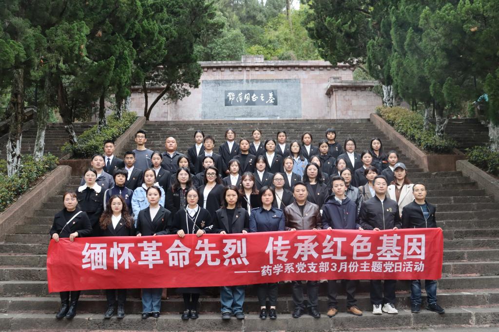 为深入学习贯彻落实习近平新时代中国特色社会主义思想,践行《中华人民共和国爱国主义教育法》,2024年3月26日,药学系党支部组织全系教职工及学生代表前往遵义会议会址、红军山烈士陵园开展“缅怀革命先烈、传承红色基因”主题党日活动。