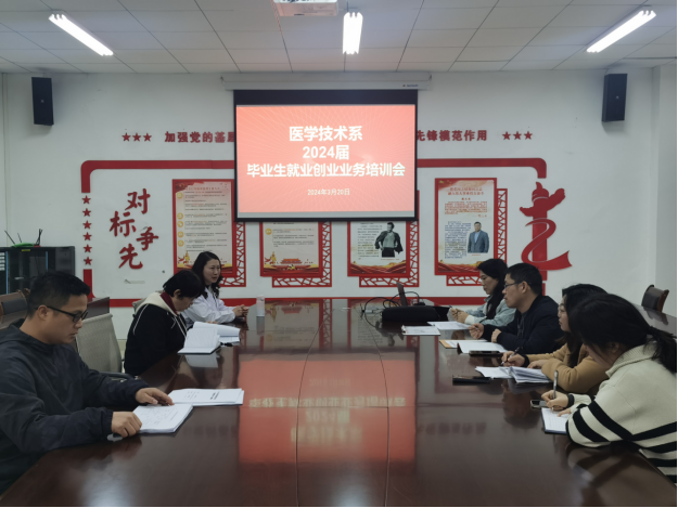 2024年3月20日上午,医学技术系在A304会议室召开2024届毕业生就业工作业务培训会,会议由系党总支书记董亚云主持,系党总支副书记代晖、系就业工作人员颜学森及全体2021级辅导员参会。