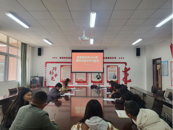 3月12日下午,医学技术系在系部会议室召开本学期第四次政治学习会议。会议由系党总支书记董亚云主持,全体教职工参会。