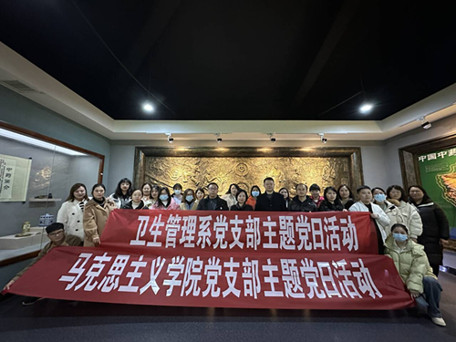 2024年1月4日下午16:20,卫生管理系党支部与马克思主义学院党支部全体党员以“一枝、一叶、识本草,一学、一践、传文化”为主题召开1月份主题党日活动,两支部全体党员前往学校中药标本馆进行参观学习。