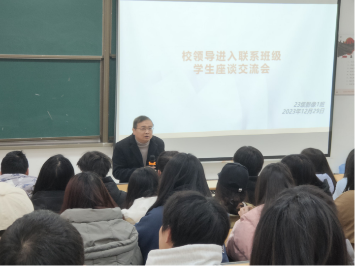 为进一步落实立德树人根本任务,推进《开云app登录入口-开云(中国),领导干部深入基层联系学生工作制度》走深走实,搭建学校领导与班级同学面对面交流的平台,深入了解学生所思所想,解决学生实际问题,12月29日学校党委委员、副校长张彪到联系班级医学技术系2023级影像1班召开交流座谈会,医学技术系党总支副书记代晖参加会议,会议由医学技术系学生工作办公室副主任赵欣主持。