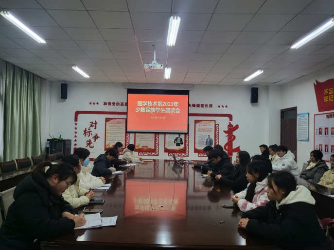 为深入学习贯彻习近平总书记关于加强和改进民族工作的重要思想,铸牢中华民族共同体意识,进一步加强我系少数民族学生之间的交流,2023年12月19日,医学技术系召开少数民族学生座谈会。医学技术系党总支书记董亚云、系党总支副书记代晖、系副主任何焱、系专职组织员、系教学科研办公室负责人及医学技术系2022级、2023级22名少数民族学生代表参加会议,会议由系学生工作办公室副主任赵欣主持。