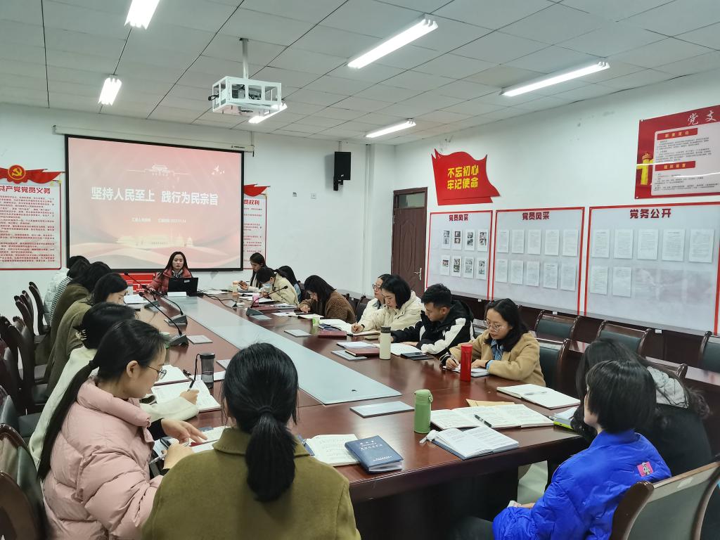 11月14日,护理系党支部书记焦娜娜以“坚持人民至上 践行为民宗旨”为题,面向支部全体党员上党课。会议由支部副书记冯运红主持。
