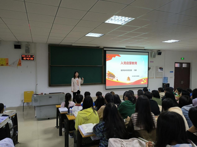 系党总支副书记代晖围绕党的历史、发展党员工作原则、端正入党动机、明确入党意义、发展党员要求和流程等内容为新生开展入党启蒙教育,积极引导新生向党组织靠拢,增强党在青年学生中的号召力和凝聚力。