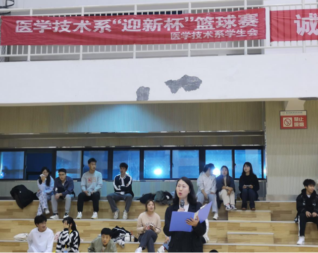 为丰富同学们课余生活,增强同学们的团队精神,展现大学生积极向上的精神风貌,2023年10月23日,医学技术系在学校体育馆二楼举办“迎新杯”篮球赛开幕式。系党总支副书记代晖、团学工作负责人戴星璨出席开幕式,医学技术系2022级、2023级各班运动员参加。