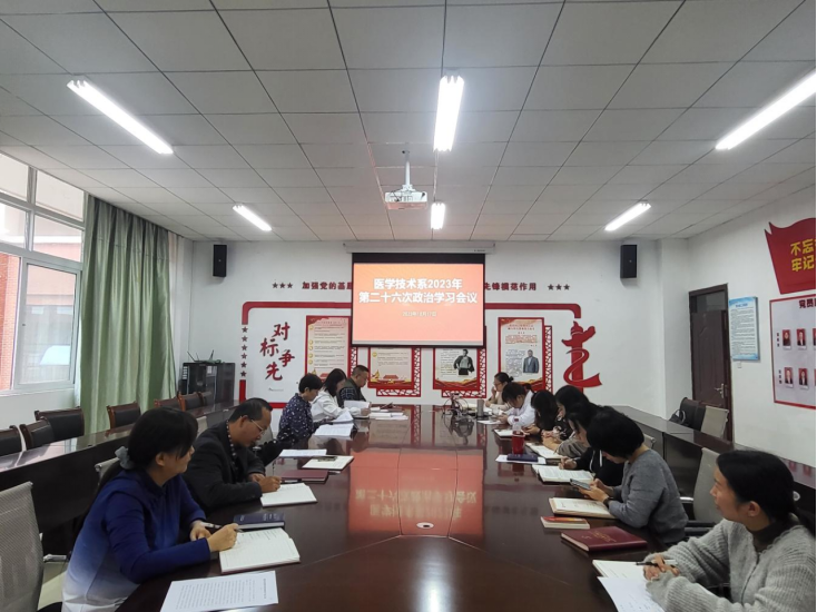 10月17日下午,医学技术系在系部会议室召开本学期第26次政治学习会议。会议由系党总支书记董亚云主持,全体教职工参会。