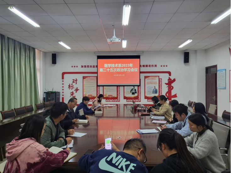 10月10日下午,医学技术系在系部会议室召开本学期第二十五次政治学习会议。会议由系党总支书记董亚云主持,全体教职工参会。