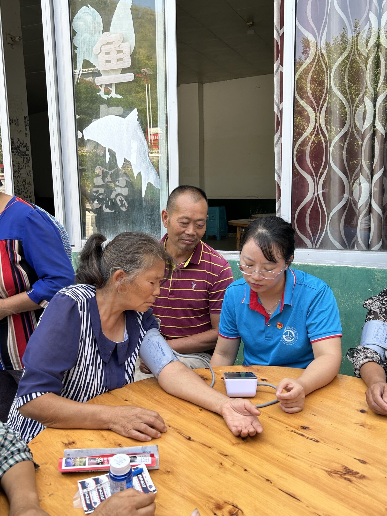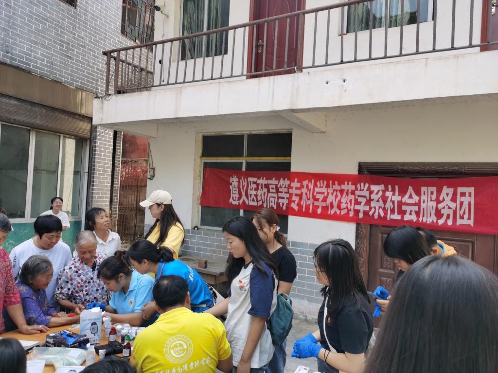 随后,在我校驻村干部姚霞同志的协助下,药学系社会服务团开展了“送科技下乡 助乡村发展”为主题的社会服务活动。服务团成员为青杠坡村民开展血糖血压检测、家庭用药知识宣讲、卫生用品发放、中药材种植技术指导等活动。
